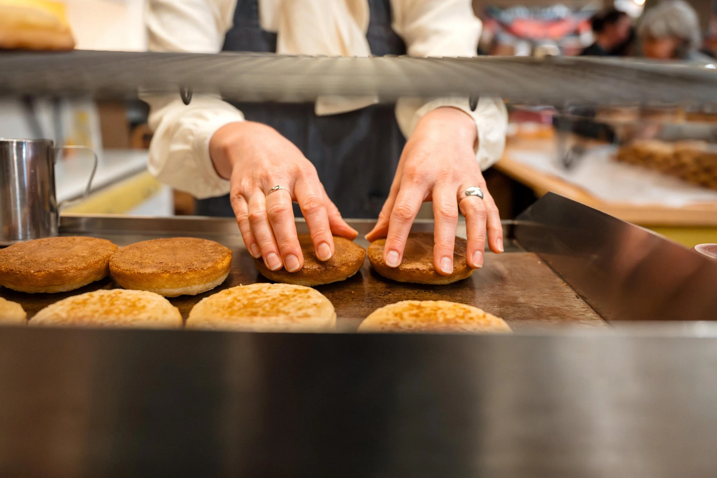 Our sourdough crumpets are slow-fermented, lovingly handmade in the Barossa Valley and proudly imperfect in all the right ways. Thick, bouncy, and full of tiny little holes just waiting to soak up the good stuff — butter!
